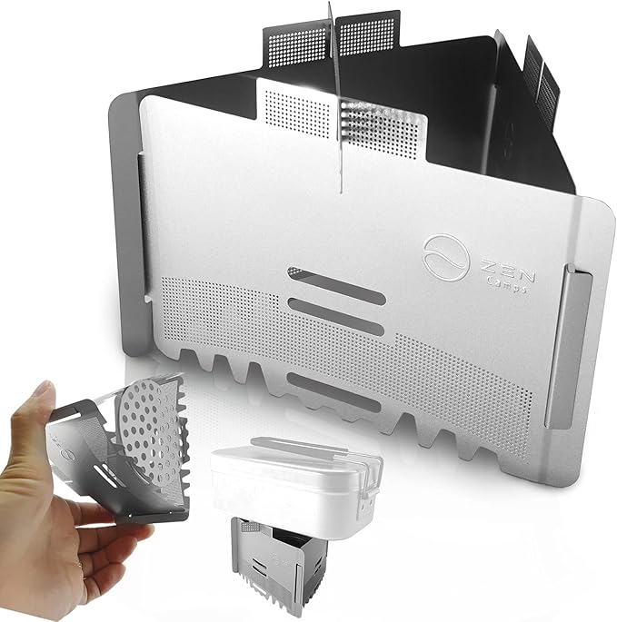 - ⛺️Solid fuel and alcohol stoves are convenient but vulnerable to wind. Our product, which is a combined wind screen and stovetop, stand for alcohol stove and solid fuel, will solve this problem that campers have.⛺️ You can obtain stable high heat output because the special metal mesh on the wind screen will create a chimney effect while preventing the intrusion of the wind into the flame.