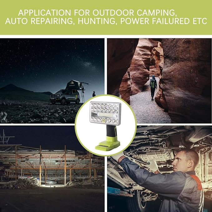 - 🌲【WIDE APPLICATIONS】 Outdoor spotlight 18v can be used in darkness jobsite work area, baseroom, underground garage, hiking, camping, hunting , exploring, barbecue, walking dogs, and emergency lights for home power failure etc.