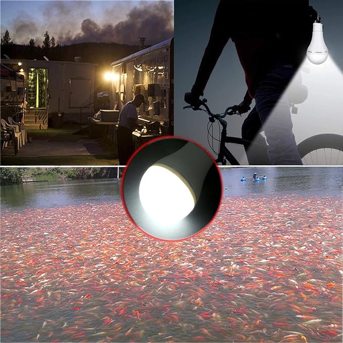 - Solar Powered : This solar light can be charged by solar panel, it is environment-friendly. when there sunshine , the solar panel convert solar power to the light bulb and store it in the battery of light bulb.