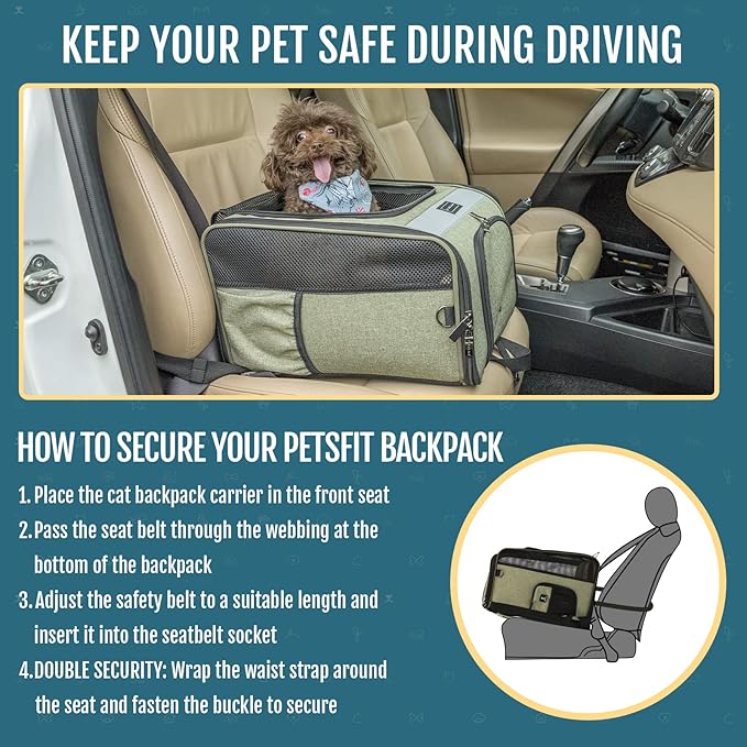 Petsfit Cat Backpack Carrier with Soft Plush Mat, Cross Ventilation Design, Dog Backpack Easy Fit for Travel Camping Hiking, Hold Pets Up to 22 lbs