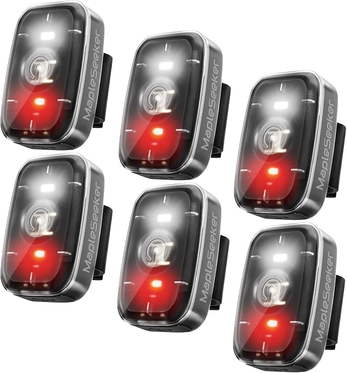 - [Small Yet Strong] - Slim, lightweight, compact and super bright set of safety lights with 5 eye-catching lighting modes: white, white strobe, red, red strobe, red-white flash. It weighs 1/2 oz, you won't even know you're wearing it, but it’s made of high-quality plastic material and designed under Waterproof IP67, it can stand 10m height falling resistance and enable you to running or cycling in rainy nights without fears.