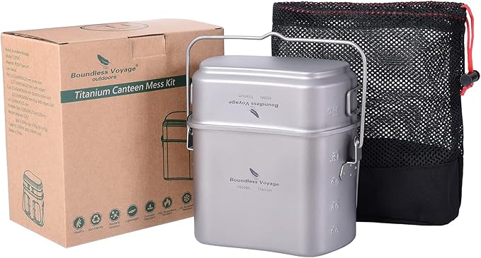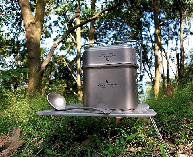 Boundless Voyage Titanium Mess Kit Hanging Pot Cup with Lid Folding Handles Outdoor Camping Cooking Set Ultralight Portable Tableware Cookware
