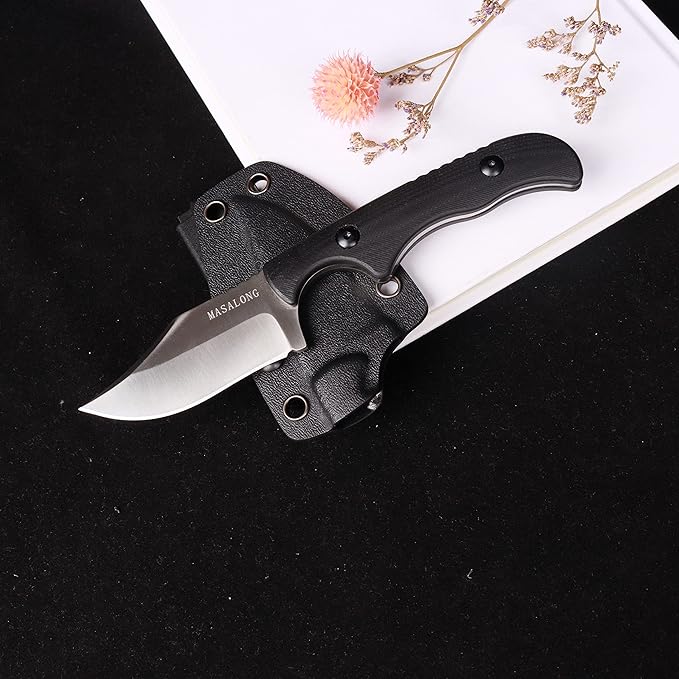 MASALONG kni232 EDC 9Cr14MOV Hard Stainless Steel knife Camping Fixed-Blade Knives (Butcher Knife B)