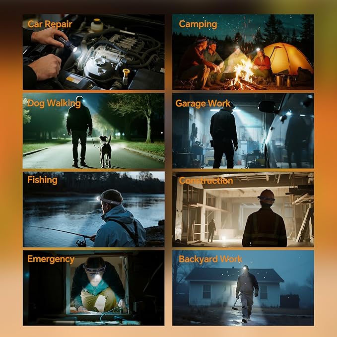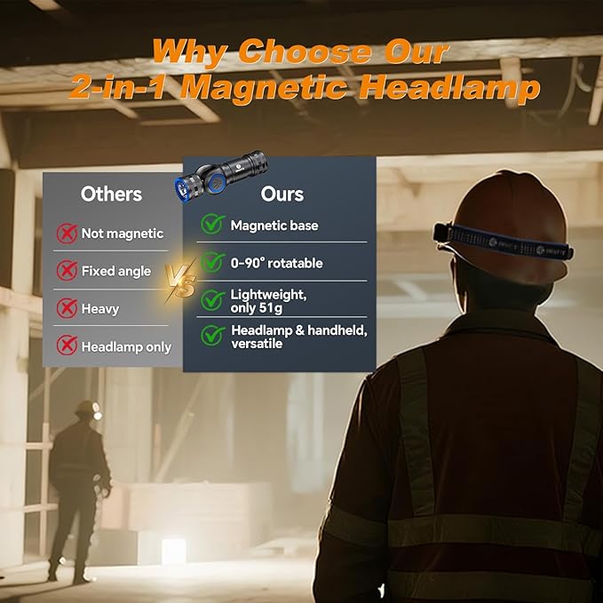 - Adjustable 0-90° Headlamp – The Brinyte HL16 rechargeable headlamp features a 0-90° swivel head, letting you direct light precisely for repair, inspection, workshop, or emergency tasks