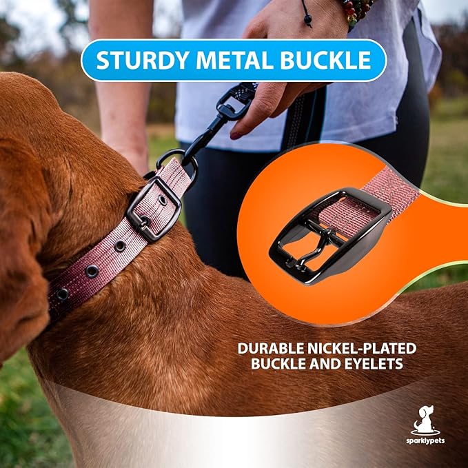 SparklyPets Heavy Duty Dog Collar with Handle for Medium and Large Dogs – Professional Collar with Reflective Stitches, Soft Handle & Nickel-Plated Buckle (Large (18"~22"), Pink)