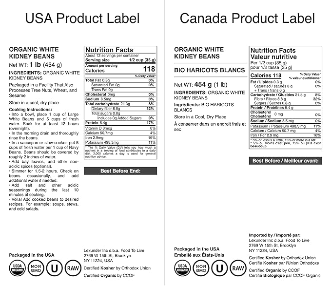 - ✔️ ORGANIC & NON-GMO, KOSHER, VEGAN: White Kidney Beans by Food to Live are USDA Organic, 100% Raw, Kosher, and do not contain any additives.