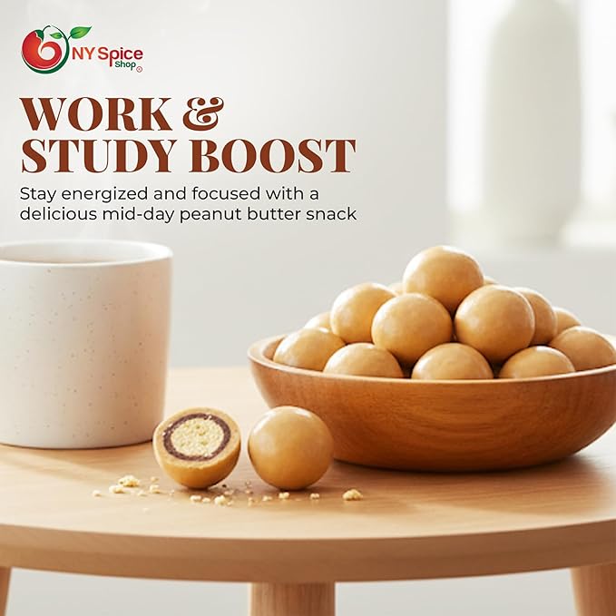 NY Spice Shop Peanut Butter Chocolate Malt Balls Party Decorations - 8 Ounce Malted Milk Ball Candy Birthday Gifts - Chocolate Malted Milk Balls - Dark Chocolate Malt Ball Holiday Snacks