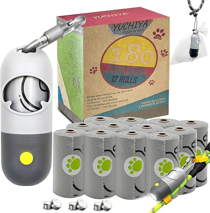 - PEFECT MATCH FOR DOG WALKING: The package contains 1 led dispenser,15 poop bags enough to keep you safe without worrying about shortage,3 kinds of hooks and 6 extra button batteries.This is the great equipment for those of you who love to walk your dog that is convenient and economical