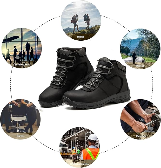 Waterproof Hiking Boots for Men, 6" Comfortable Soft Toe Shoes Mid Non Slip Hiking Shoes Outdoor Travel Shoes Leather Hiking Backpack Boots