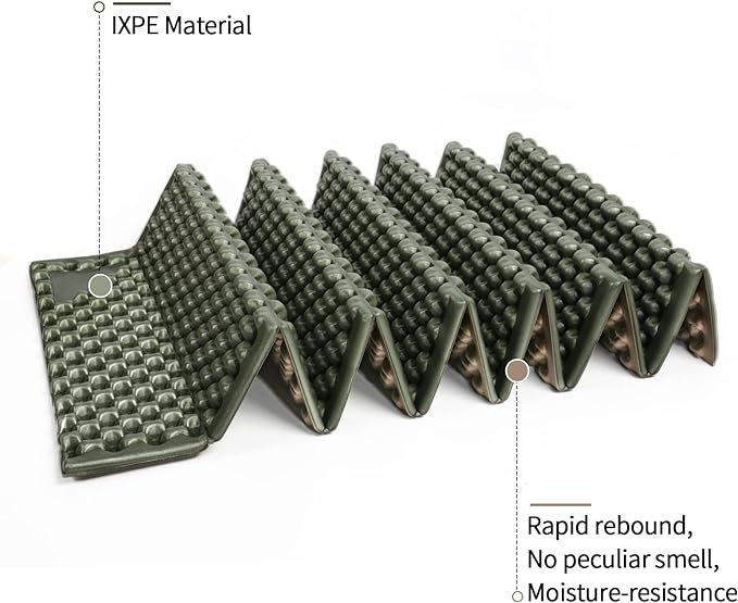 - 【Great Material】This portable sleeping pad is made of a lightweight IXPE foam that is comfortable to lay on. The closed cell foam sleeping pad ergonomically support all of your pressure points, giving you superior support and comfort all night long, no matter how you sleep.