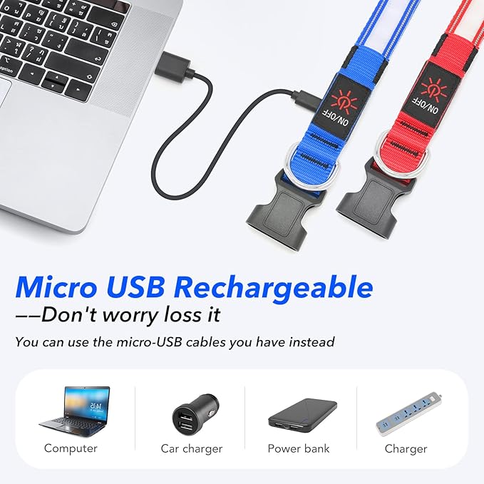 - Stay Visible & Safe at Night: This LED dog collar features a bright glow strip and reflective stitching, offering 360° visibility up to 500 meters. Keeps your dog safe and easy to spot during night walks, hikes, or in low-light conditions.