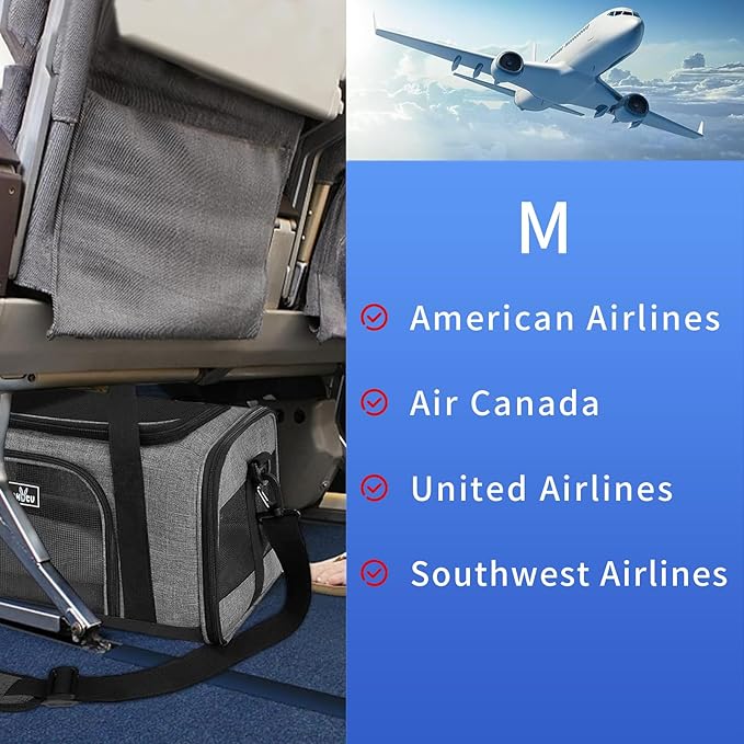 - đăFLIGHT & CAR TRAVELă: Folded size: 17.1 x 11.4 x 3.4 inches; Unfolded size: 17.7 x 11 x 11 inches. Wakytu pet carrier meets United Airlines/Alaska Airlines/Air Canada/Delta Airlines boarding requirements and can be placed under the front seat in the cabin. â Buckle on the back secures the carrier to the car seat belt. âĄAdjustable shoulder straps and comfortable padded design, no shoulder hand pain even after long hours of carrying and carrying.