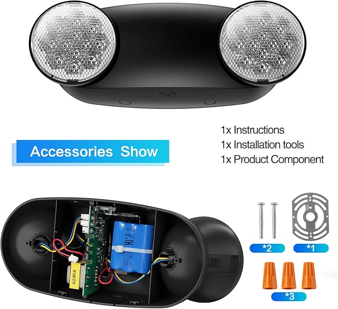 - ✔[ Ratings]: Black emergency lighting for UL damp location listed standard at 50-104 degrees F, meets or exceeds all applicable requirements for Life Safety Code and state specific requirements.