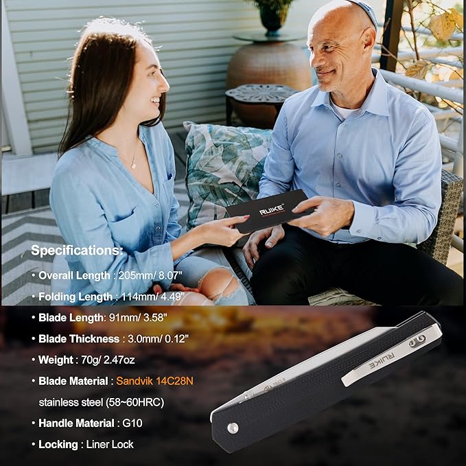 Ruike P865, EDC Camping Folding Pocket Knife,14c28n Steel,Liner Lock,G10 Handle,Blet Clip