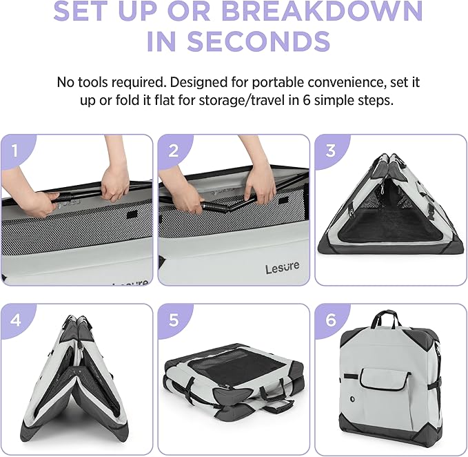 - Breathable Design: Four zippered doors of this escape proof dog crate give your pet multiple ways to enter and exit their new home. Four high-density mesh windows can provide excellent visibility and ventilation. Roll up and secure the mesh panels with velcro for extra air flow and to check on your furry friend.