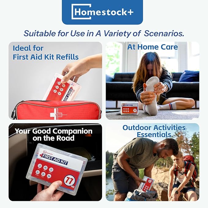 First Aid Kit Refill - Extra Replacement Supplies for First Aid Kits, Loose Packed Restock Supply Pack -77 Piece