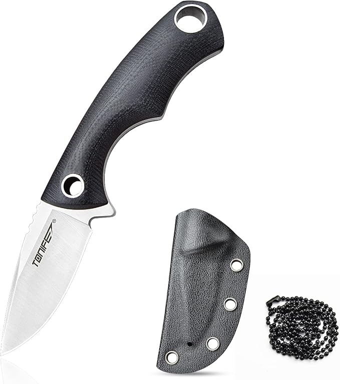 TONIFE Neck Knife Mini Outdoor Survival Fixed Blade Knife, EDC High Hardness Sharp Blade 1.7'' Portable Neck with Kydex Sheath and Ball Chain (black)