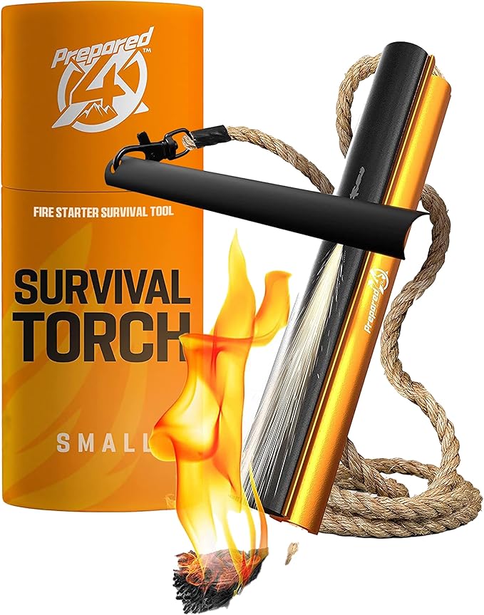 - LIGHT A FIRE ANYWHERE INSTANTLY – Patented Survival Torch produces a shower of sparks guided directly to the wick so your fire ignites fast even in the wind and pouring rain. Start your fire regardless of what nature is throwing at you.