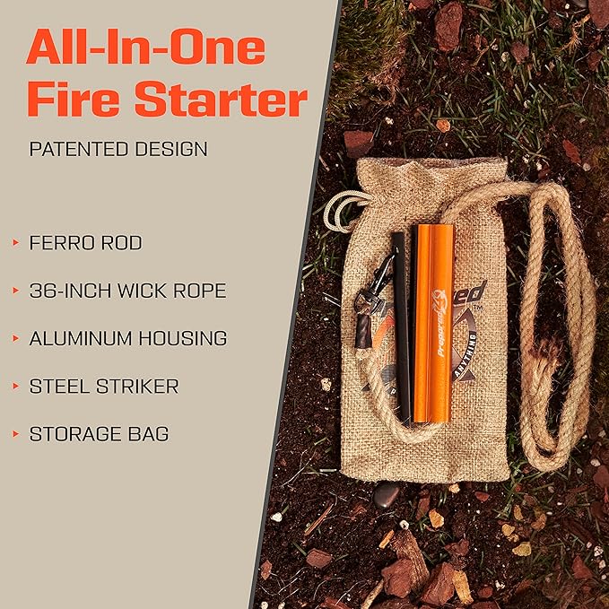 - ULTIMATE FIRE-STARTER TOOL – No need to buy a separate ferrocerium rod, striker, tinder wick, and bellow because this fire kit includes everything you need to create a safe, controlled fire.