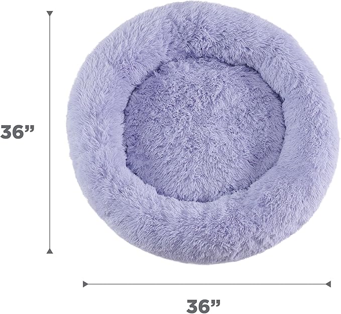 Best Friends by Sheri Original Calming Donut Dog and Cat Bed, Shag Faux Fur, Lavender, (36in x 36in) - Anxiety Relief for Pets Up to 100 lbs