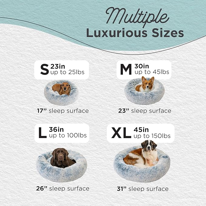 - Calming Dog Bed: 30-inch donut cuddler provides a cozy haven designed to help soothe anxiety and stress in medium dogs up to 45 lbs; ideal for breeds such as Cocker Spaniel, Beagle, Boston Terrier, Shiba Inu, Corgie, French Bulldog, English Bulldog