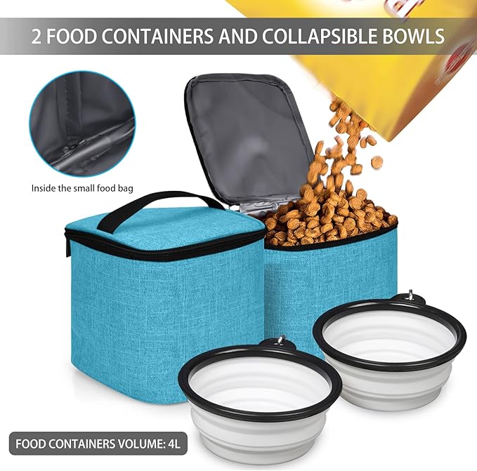 BAGLHER Pet Travel Bag, Double-Layer Pet Supplies Backpack (for All Pet Travel Supplies), Pet Travel Backpack with 2 Silicone Collapsible Bowls and 2 Food Baskets Sky Blue