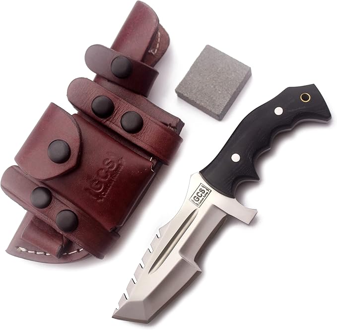 GCS Handmade D2 steel Hunting Knife G10 Handle Fixed Blade Knife Right Hand Scout Carry Buffalo leather Sheath and Sharpening Stone for Hunting Camping Survival and EDC