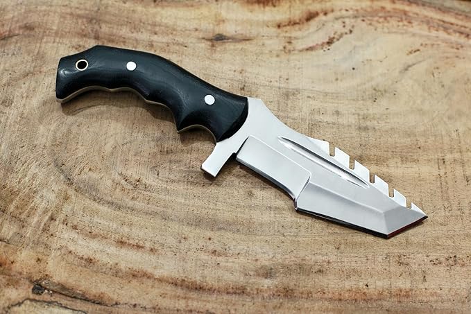 - Crafted from premium materials: The hunting knife is constructed from a single 27.94-cm long piece of steel extending from the tip to the end of the handle. The fixed blade is forged from top-quality D2 steel. This renders it an exceptionally unique piece that deserves a place in every collection of hunting knives.