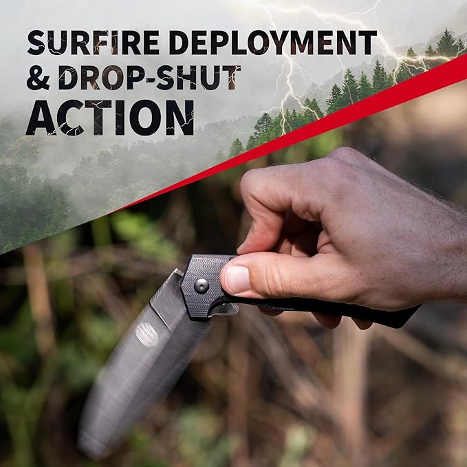 - ā”DROP-SHUT ACTION: The deployment is smooth and satisfying with drop-shut action as the blade rides on ceramic bearings. We added jimping on the flipper tab which guarantees surefire action and solid lock-up every time. *There is a break in period, 15-20 flips and the action will get smoother with use.