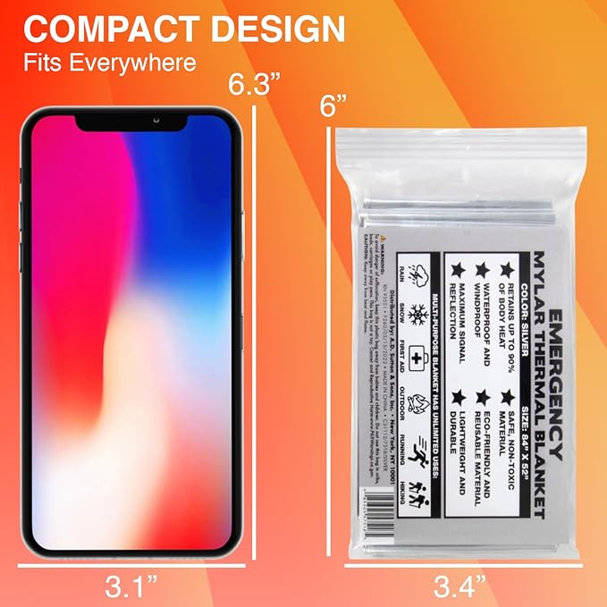- 💧WATERPROOF, WINDPROOF, & HIGH TEMP RESISTANT: 7 ft. x 4 ft. space blanket throw protects against harsh elements in emergency & unexpected outdoors situations. Perfect as bug out bag blanket & in hiking & camping backpacks for storms, brush fires, & inclement weather
