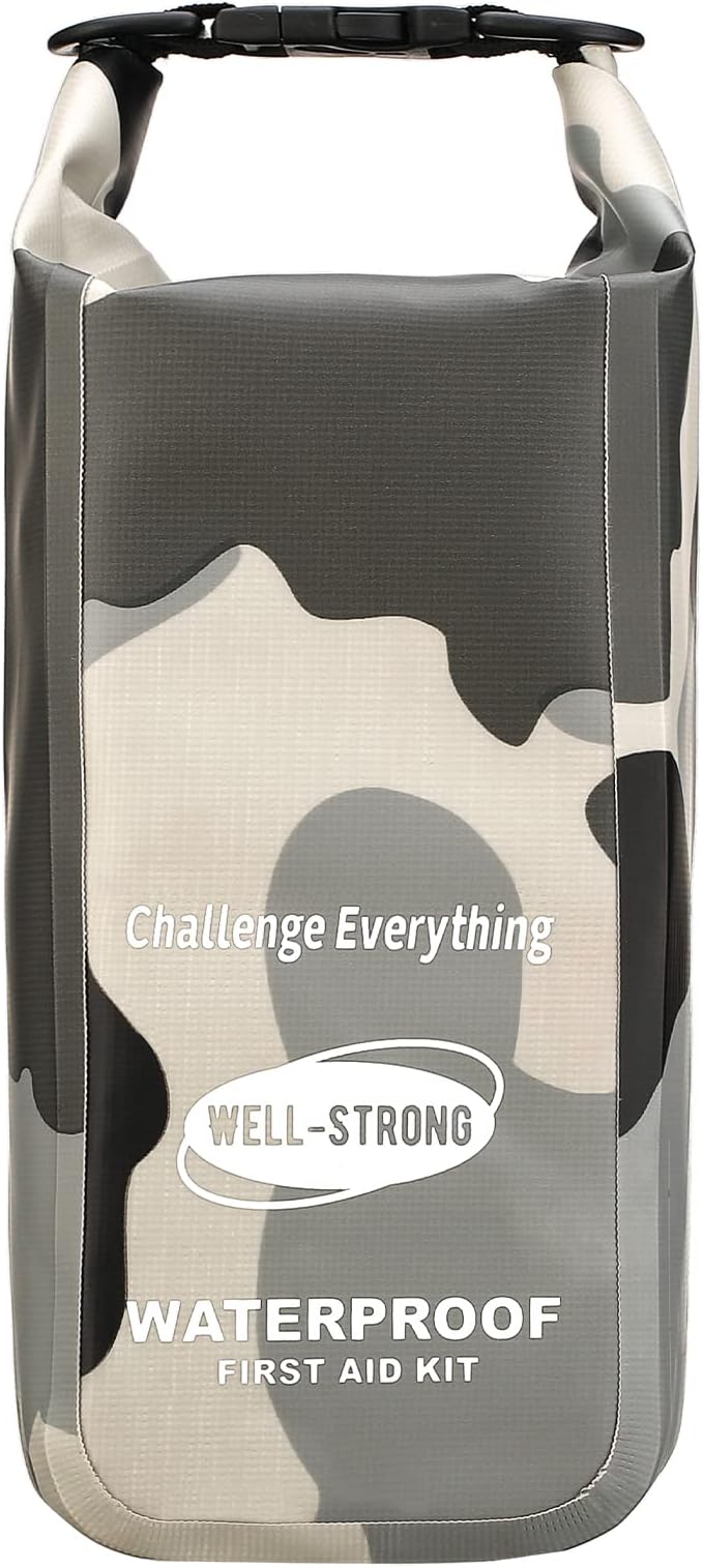 Waterproof First Aid Kit Roll Top Boat Emergency Kit with Waterproof Contents for Fishing Kayaking Boating Swimming Camping Rafting Beach Camouflage Grey