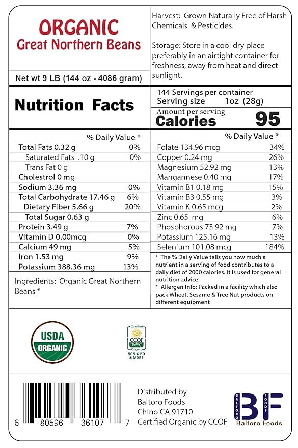 - Certified Organic: Clean Safe USDA Certified Organic Great Northern Beans