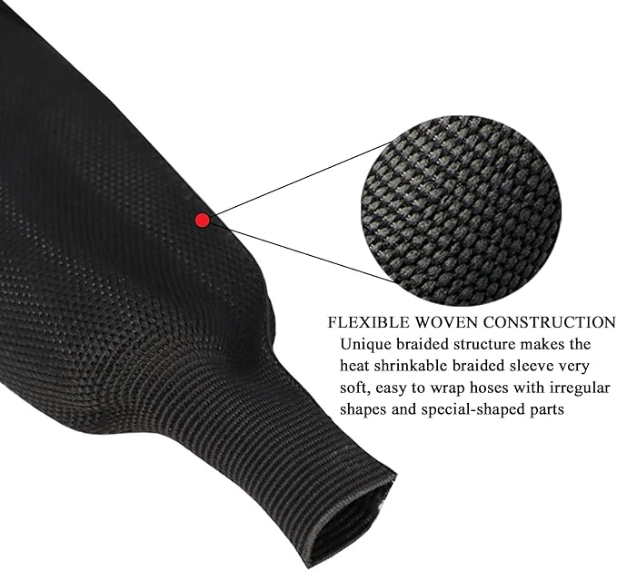 - Abrasion & Protection: Black flat abrasion-resistant heat shrink fabric braided sleeving woven structure, has good flexibility that protect cables/cover wiring/harnesses from abrasion. It can provide outstanding protection and tough and durable