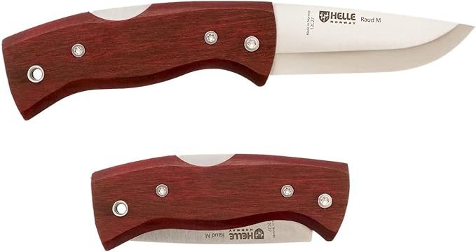 HELLE Knives - Raud M - Folding Pocket Knife - 2.72" Stainless Steel Blade with Red Birch Handle & Detachable Clip - Made in Norway