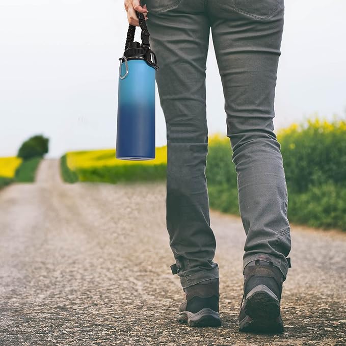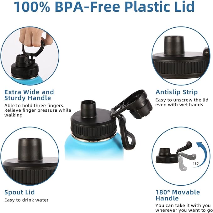 - 【Vacuum Insulation and Wide Handle】Designed with double walled vacuum insulation, featuring superior insulation and a condensation proof design. Volhoply Water bottle can keep hot for 12 hours and keep cold for 18 hours, allowing you to enjoy your favorite flavor in the long run. Our lids handle have been improved.Able to hold three fingers, relieve finger pressure while walking. Made for outdoor lovers, our water bottle is the best choice!
