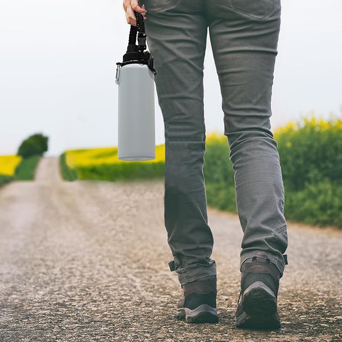 - 【Humanized Paracord Handle】Volhoply water bottle includes a removable survival paracord handle and a metal carabiner. It makes you easier to carry bottles. The carabiner on the handle can be hung on the backpack to help you free your hands. In special cases, our ropes can be disassembled and used for shoelace, hunting, fixed wounds, fixed emergency shelter and countless other uses. It is a ideal for outdoor activities.