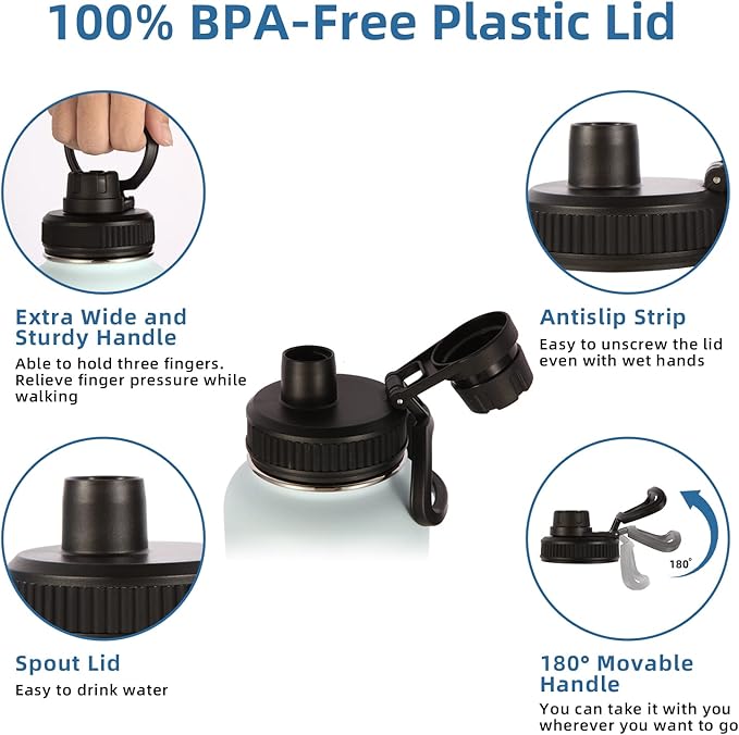 - 【Vacuum Insulation and Wide Handle】Designed with double walled vacuum insulation, featuring superior insulation and a condensation proof design. Volhoply Water bottle can keep hot for 12 hours and keep cold for 18 hours, allowing you to enjoy your favorite flavor in the long run. Our lids handle have been improved.Able to hold three fingers, relieve finger pressure while walking. Made for outdoor lovers, our water bottle is the best choice!