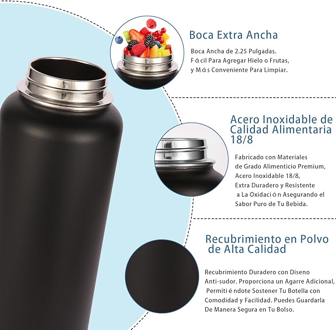 - 【Vacuum Insulation and Wide Handle】Designed with double walled vacuum insulation, featuring superior insulation and a condensation proof design. Volhoply Water bottle can keep hot for 12 hours and keep cold for 18 hours, allowing you to enjoy your favorite flavor in the long run. Our lids handle have been improved.Able to hold three fingers, relieve finger pressure while walking. Made for outdoor lovers, our water bottle is the best choice!