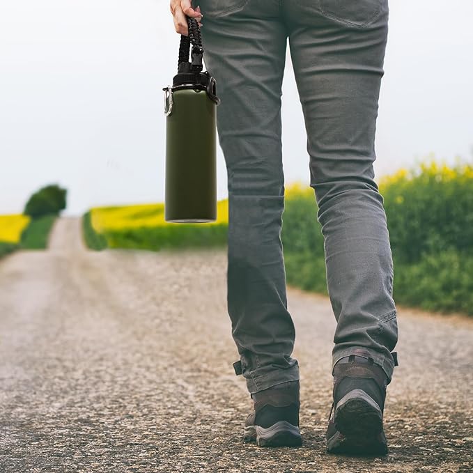 - 【Humanized Paracord Handle】Volhoply water bottle includes a removable survival paracord handle and a metal carabiner. It makes you easier to carry bottles. The carabiner on the handle can be hung on the backpack to help you free your hands. In special cases, our ropes can be disassembled and used for shoelace, hunting, fixed wounds, fixed emergency shelter and countless other uses. It is a ideal for outdoor activities.
