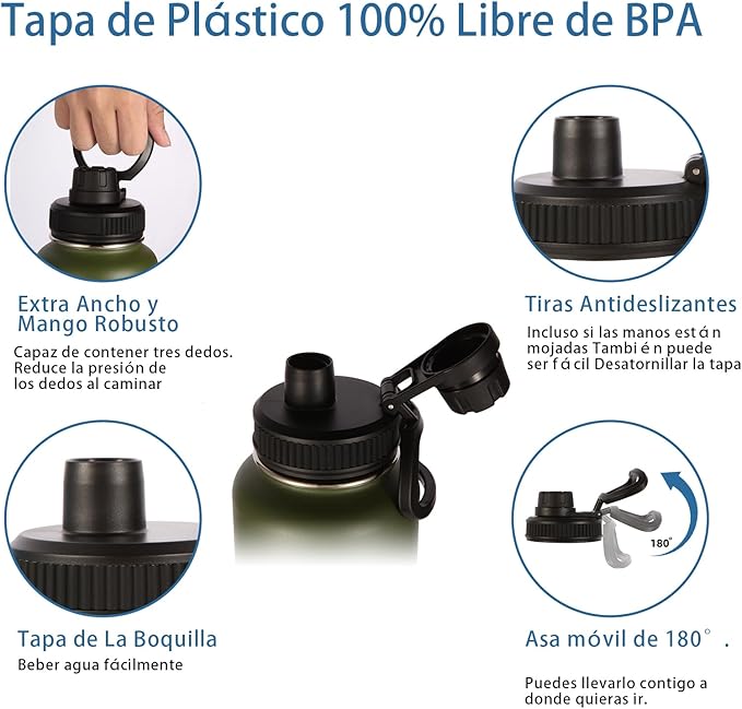 - 【Vacuum Insulation and Wide Handle】Designed with double walled vacuum insulation, featuring superior insulation and a condensation proof design. Volhoply Water bottle can keep hot for 12 hours and keep cold for 18 hours, allowing you to enjoy your favorite flavor in the long run. Our lids handle have been improved.Able to hold three fingers, relieve finger pressure while walking. Made for outdoor lovers, our water bottle is the best choice!