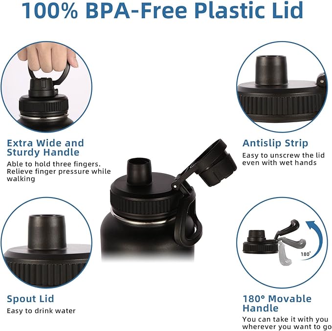 - 【Vacuum Insulation and Wide Handle】Designed with double walled vacuum insulation, featuring superior insulation and a condensation proof design. Volhoply Water bottle can keep hot for 12 hours and keep cold for 18 hours, allowing you to enjoy your favorite flavor in the long run. Our lids handle have been improved.Able to hold three fingers, relieve finger pressure while walking. Made for outdoor lovers, our water bottle is the best choice!