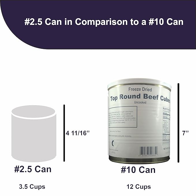 Military Surplus Freeze-Dried Top Round Beef Cubes ??16 oz, Uncooked ??#10 Can ??Long-Term Emergency Survival Food, Hunting, Camping, Backpacking & Prepper Supply ??25+ Year Shelf Life ??Made in USA ??Easy to Prepare