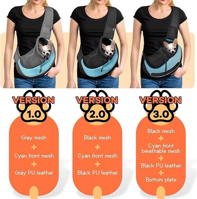YUDODO Pet Sling Carrier for Small Dogs & Cats – Hands-Free Puppy Carrier with Safety Hook, Large Zipper Pocket, Soft Breathable Mesh, Adjustable Strap & Reflective Strip (Cyan 3.0 M)