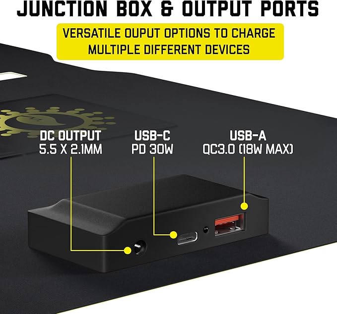 - Simultaneously charge multiple devices through USB-C, USB-A, and DC with upgraded smart IC chips for stable voltage and automatic restart—making it a premium usb solar panel charger and solar panel portable charger.