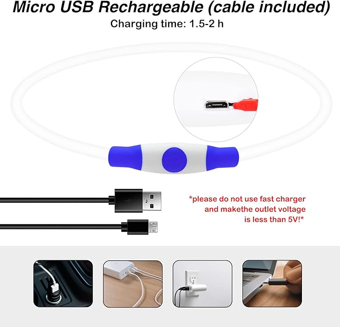 Light Up Dog Collar, Dlitk Rechargeable Cuttable LED Dog Collars, Pet Safety Light at Night Walking for Small Medium Large Dogs, Do Not Use Fast Charging (Blue)