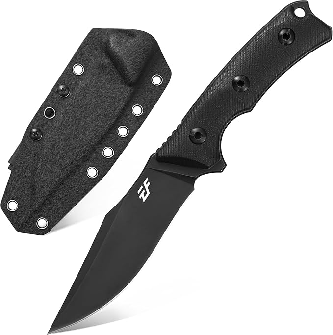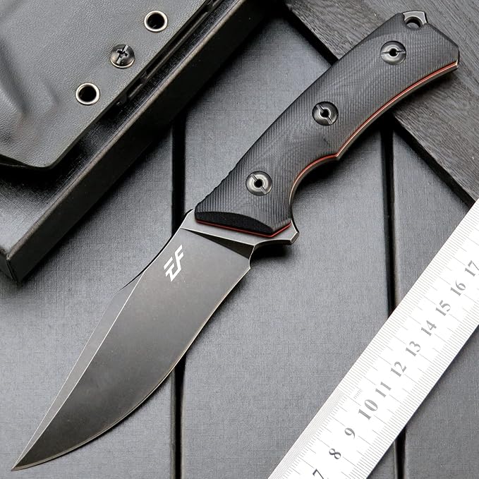 Eafengrow EF124 Fixed Blade Knife 14c28n Steel Blade Coated Black Titanium, G10 Handle Fixed Knife for Outdoor Camping Hunting Survival EDC Tool Knives with Kydex Sheath(Black)