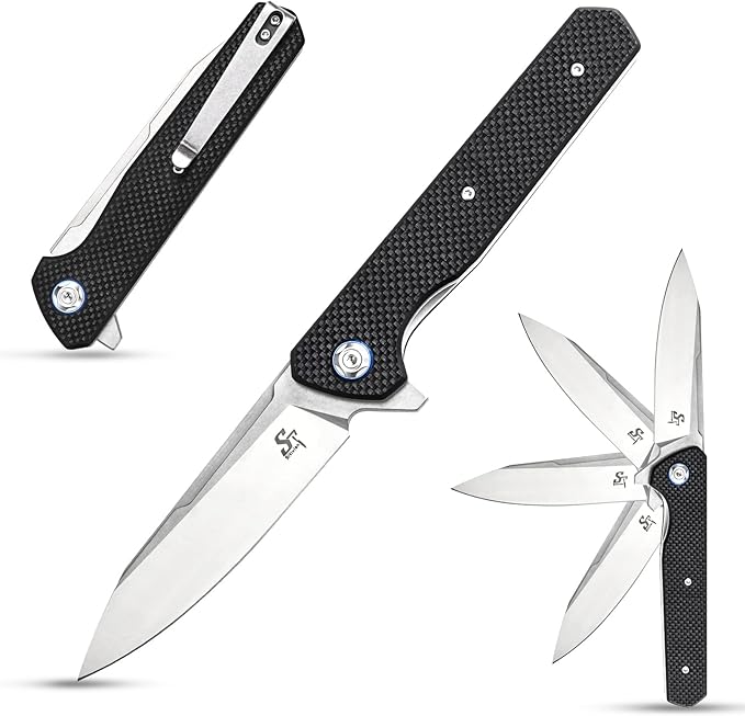 Sitivien ST135 Folding Knife,D2 Steel Blade G10 Handle Outdoor EDC Knife for Hunting Fishing Camping(Black)