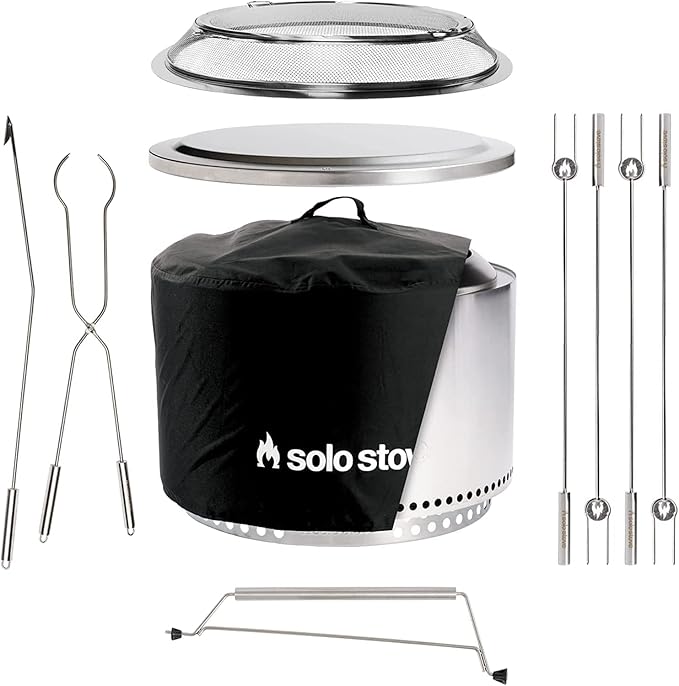 Solo Stove Yukon Ultimate Bundle 2.0 | Incl. Smokeless Fire Pit, Stand, Shelter, Shield, Lid, Handle, Sticks&Tools, Portable Camping Accessories, Wood Burning, Stainless Steel, H: 19.8in x Dia: 27in