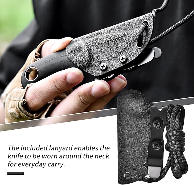 - Pocket Knife with Sheath: The TONIFE EDC Fixed Blade Knife is a compact and versatile tool, ideal for everyday use and a variety of outdoor tasks. Its practical design makes it a favorite among knife enthusiasts and the perfect companion for outdoor activities such as camping, hiking, fishing.
