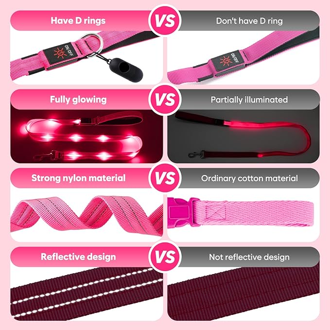 - 👍 SUPER BRIGHT & MUCH SAFER - Adopt 2024 brand new lamp beads, 500 feet of visibility makes your dog easy to see in traffic, using our led leashes for dogs can save you and your dog's life at night walking.